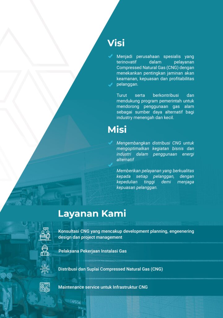 PT. ALAM CIPTA ENERGY BERDIRI PADA TAHUN 2023 DAN BERGERAK DIBIDANG ENERGI KHUSUSNYA PEMANFAATAN COMPRESSED NATURAL GAS ATAU DISINGKAT CNG. MELIHAT ADANYA KEBUTUHAN SERTA KENDALA GAS RETAIL TERPANTAU DI BIDANG USAHA SKALA MENENGAH, PT. ALAM CIPTA ENERGY BERUSAHA MEMBANTU DALAM MEMFASILITASI SISTEM PENGGUNAAN DAN INSTALASI BAHAN BAKAR DALAM BENTUK COMPRESSED NATURAL GAS (CNG).